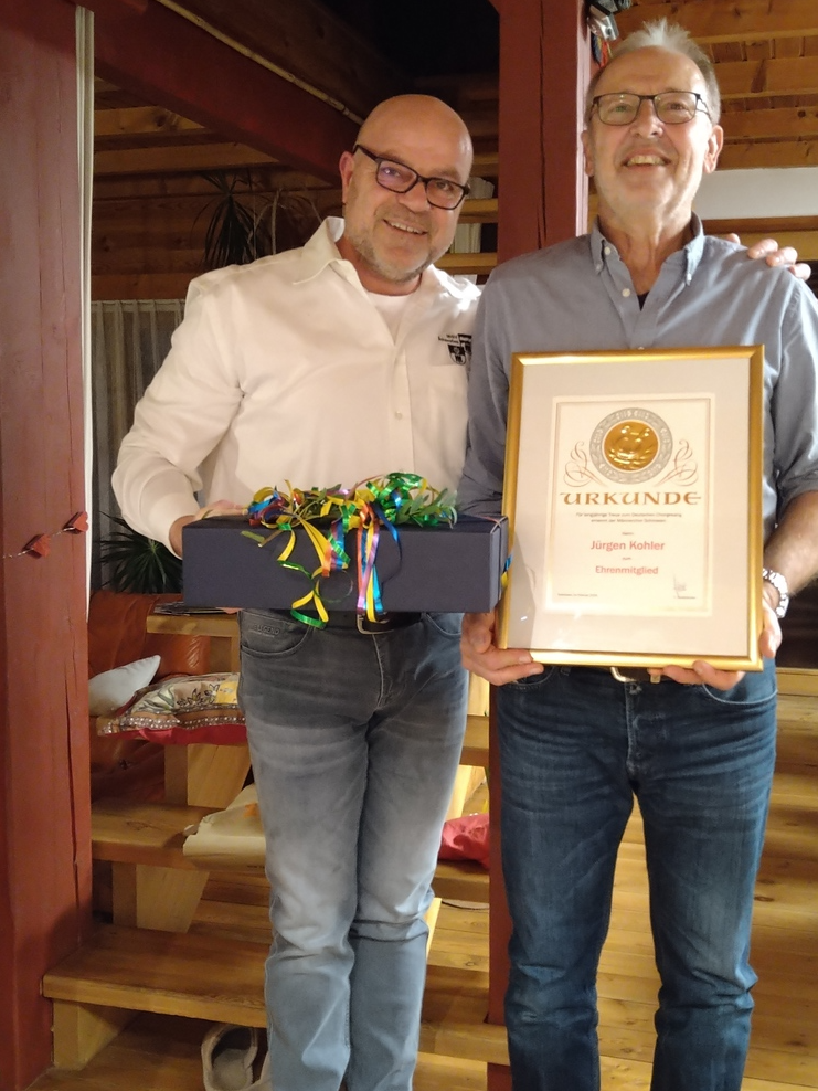 Oberschmeien. Anläßlich seines 70. Geburtstages wurde Jürgen Kohler zum Ehrenmitglied des Männergesangverein Schmeien ernannt. Die Glückwünsche zum Geburtstag überbrachte 1. Vorsitzender des MGV, Andreas Janz. Dieser ernannte Jürgen auch mit Urkunde zum Ehrenmitglied!